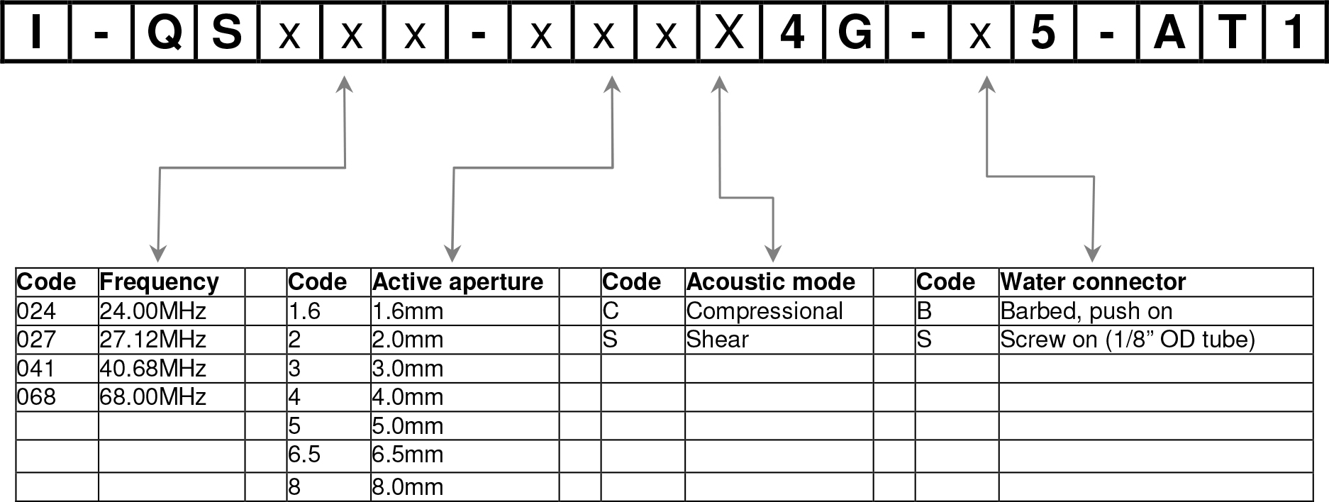 例如:I-QS041-5C10V5-U5-ST3(Q開關,40.68MHz,5mm有效孔徑,C模式,石英晶體,1900-2100nm,6mm OD 直角推入式水接頭,"牧馬"系列外殼,帶M3安裝孔)